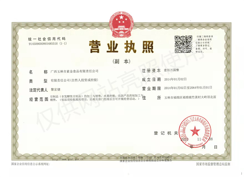 版權(quán)所有:廣西玉林市素金食品有限責(zé)任公司